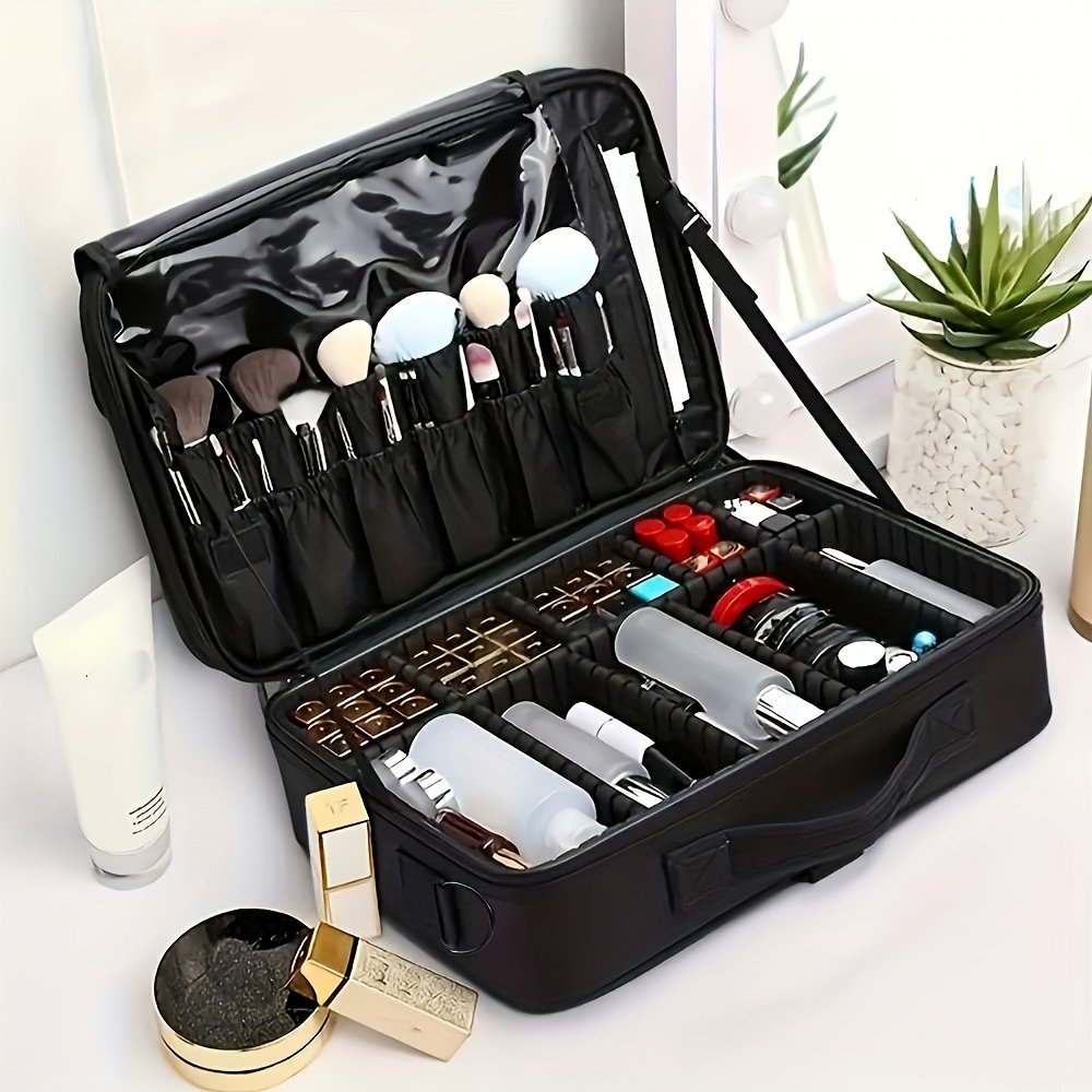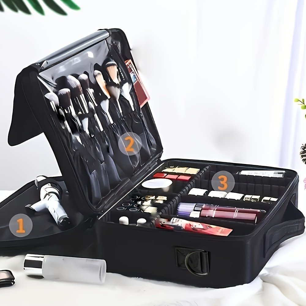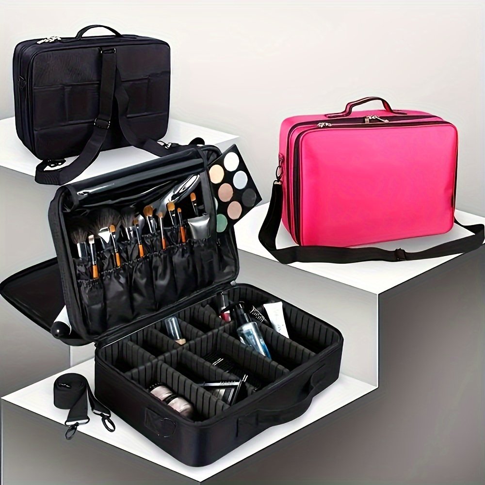 3-Layer Travel Makeup Bag With Dividers, Professional Cosmetic Train Storage Case Organizer For Cosmetic Brushes Tools, Jewelry Accessories & Toiletries