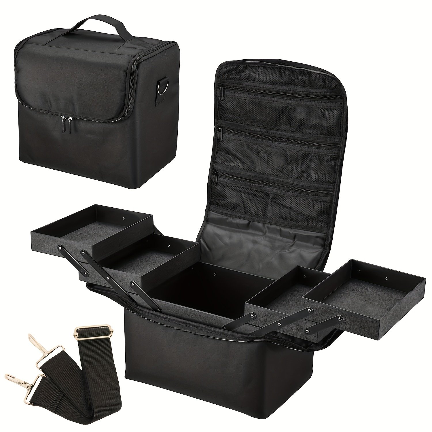 Spacious design with multiple compartments to keep all your cosmetics, nail tools, tattoo supplies, and toiletries organized and easily accessible.