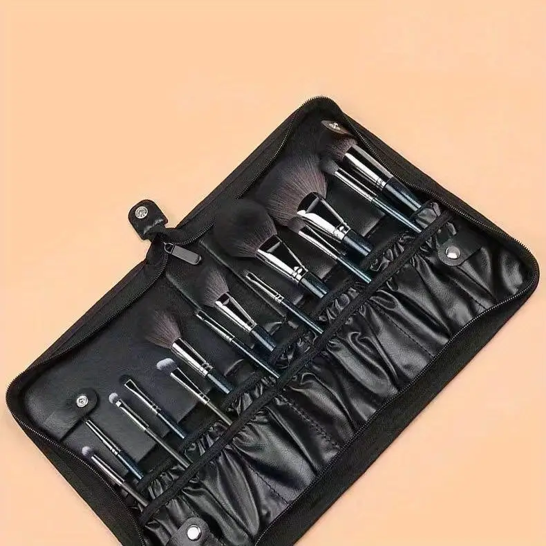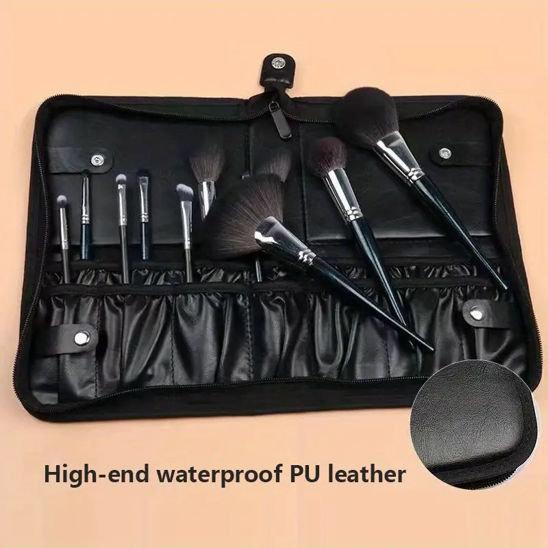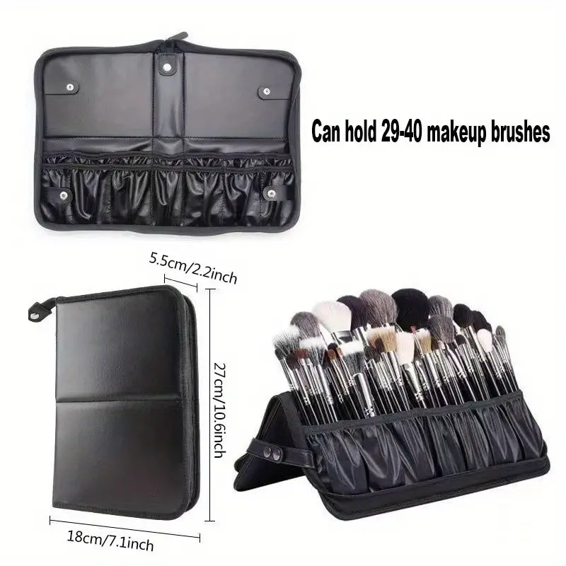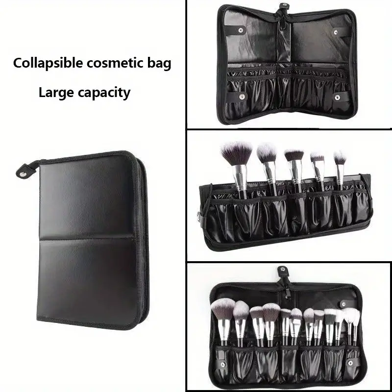 Waterproof Luxury PU Leather Makeup Brush Organizer Bag – Stylish Standing & Folding Travel Case for Secure Cosmetic Storage – Portable, Durable, & Quick-Dry – Brush Not Included
